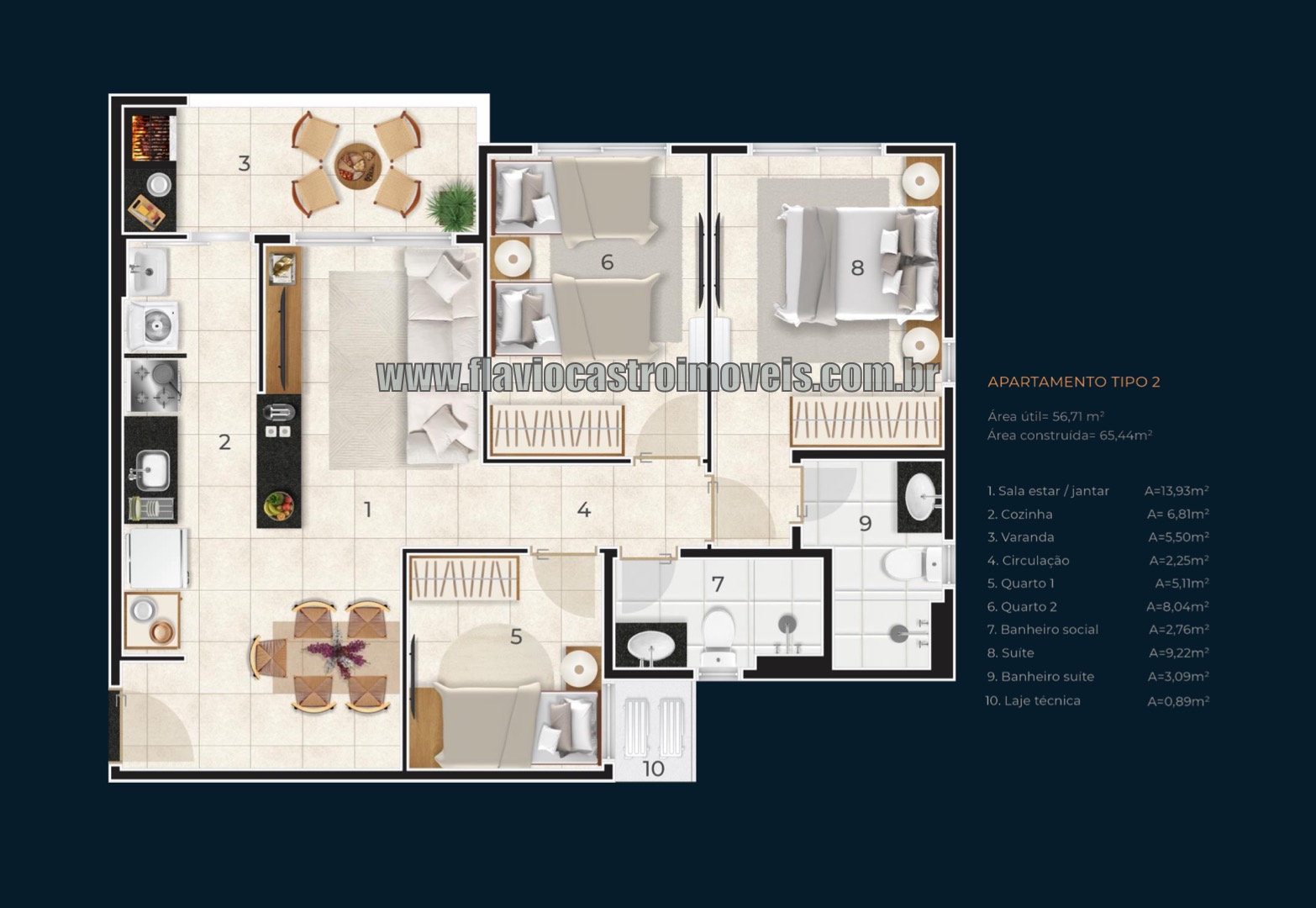 Área Privativa: 65,44m²