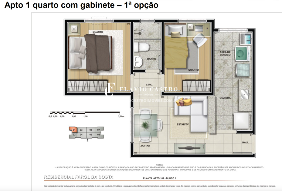 Apartamentos Por Andar: 08 (Blocos: 01, 03 e 05) e 10 (Blocos: 02, 04 e 06)