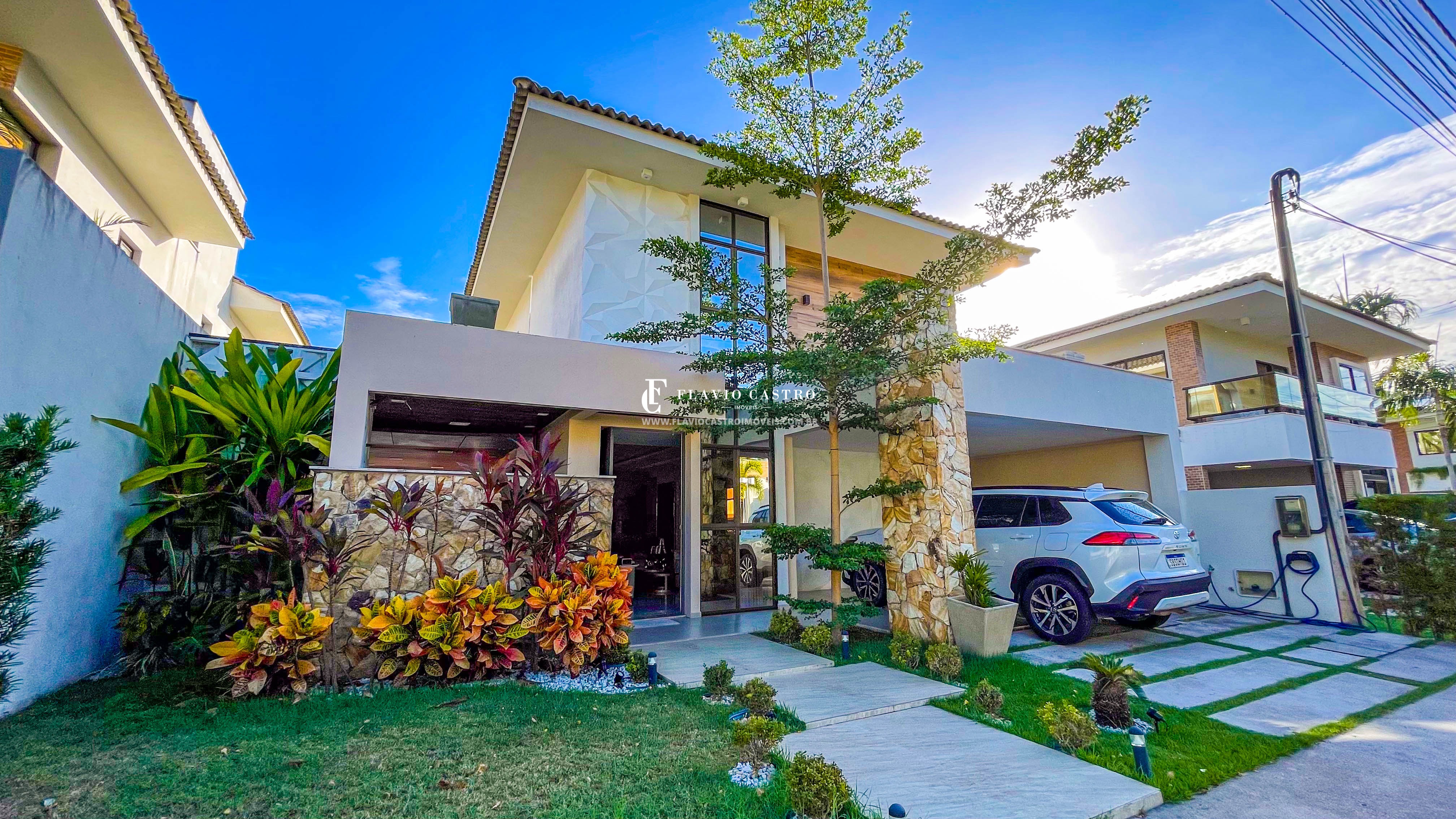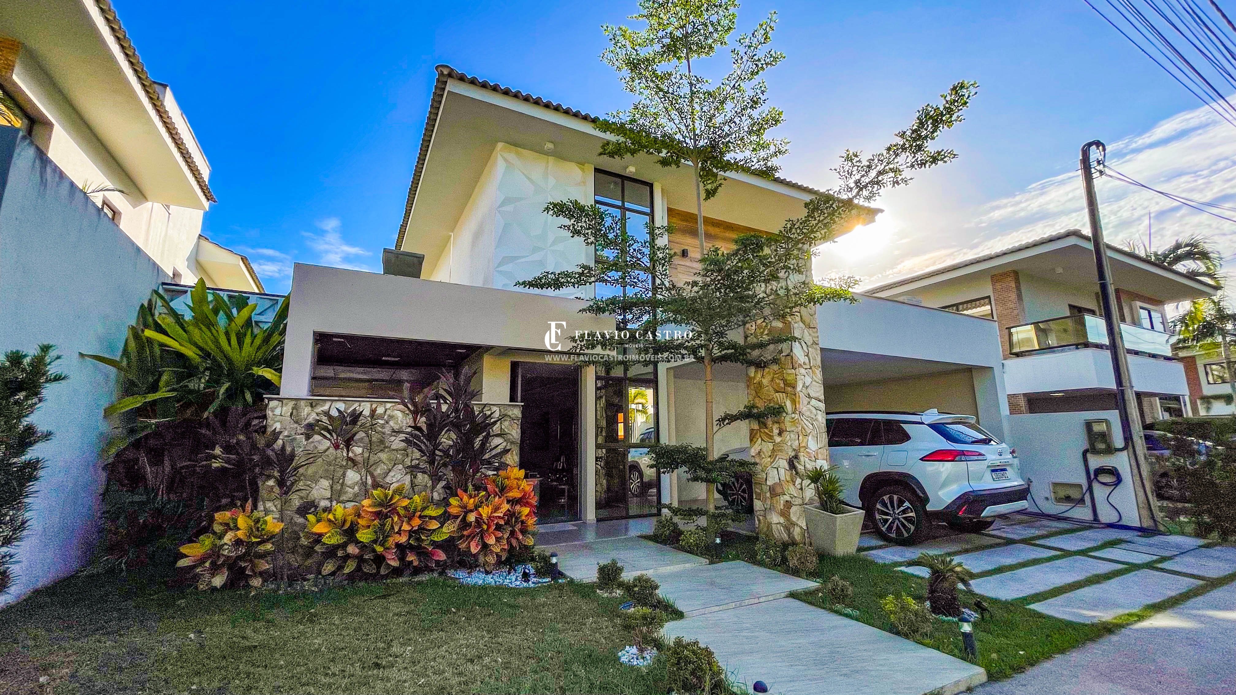 O projeto foi pensado para oferecer o máximo aproveitamento dos espaços e uma experiência de moradia completa. A casa impressiona desde a fachada, com linhas contemporâneas, jardim com projeto paisagístico e iluminação cuidadosamente planejada.