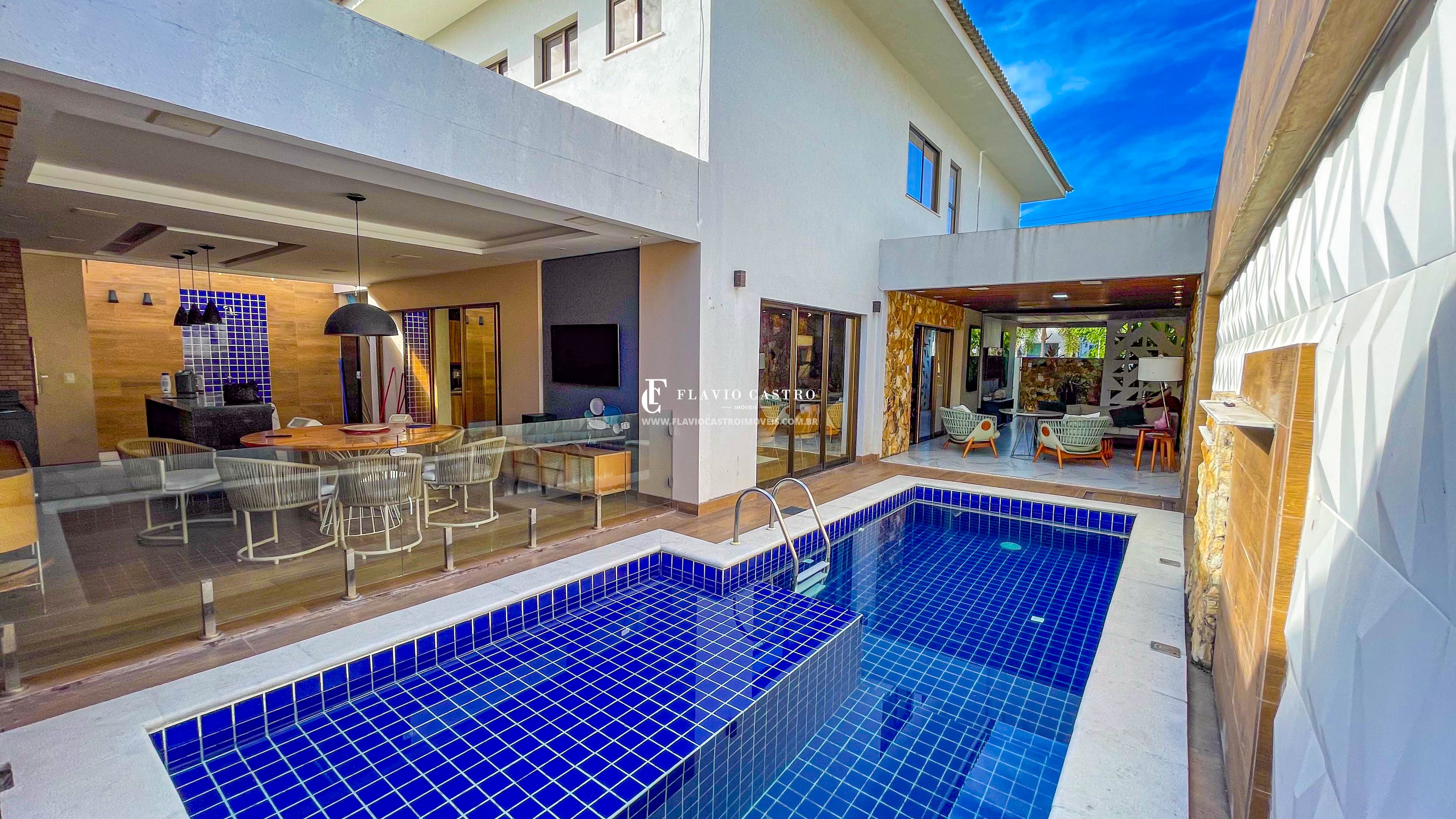 A área externa é um verdadeiro refúgio particular. A piscina com cascata iluminada, o espaço gourmet com churrasqueira elétrica e o banheiro externo tornam o lazer ainda mais prazeroso. Cada detalhe foi pensado para oferecer praticidade e elegância, em um cenário que convida à convivência e ao bem-estar.